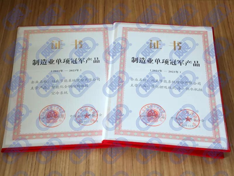 兩本中國制造業(yè)單項冠軍產(chǎn)品證書